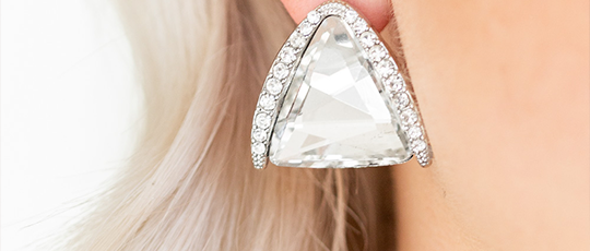 Set in silver pronged fittings, dainty white rhinestones tumble down one side of an airy silver lure for a bubbly blast of...