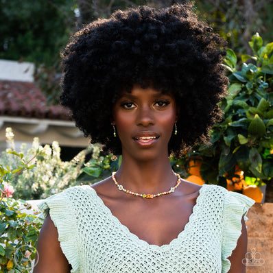 Dainty silver beads and square orange beads delicately link around the neck, creating a minimalist inspired bright pop of color. Features an...